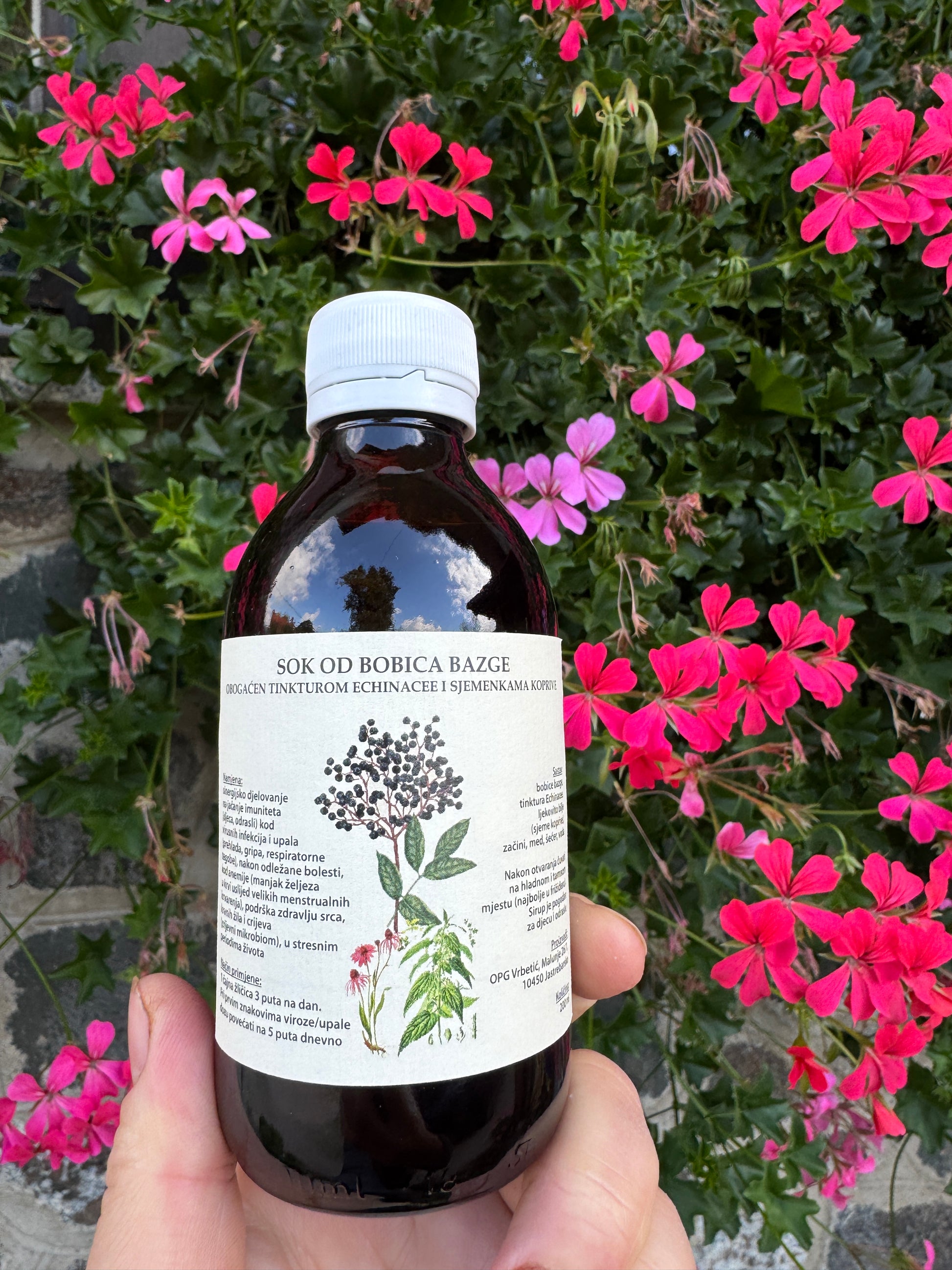 1. Sok od bobica bazge obogaćen tinkturom Echinacee i sjemenkama koprive (200 ml) - bobice bazge i Echinacea sa svojim ljekovitim djelovanjem na dobrobit pluća i jačanje prirodnog imuniteta idealna su kombinacija za teška i bolna stanja sa plućima tijekom gripe i drugih bolesti
